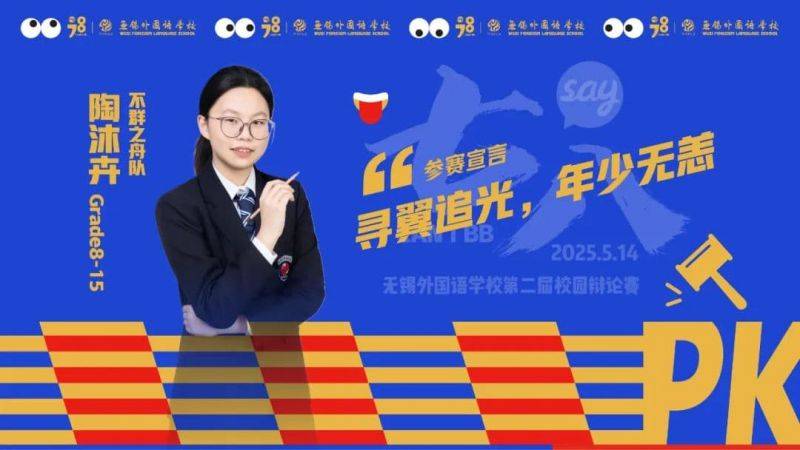 「七八说」是锡外初中部特色品牌活动,因主要面向初一、初二(七八年级)学生开展,故取“七八”谐音,以辩论为核心形式,聚焦时政热点、成长话题等,为学生搭建思辨与表达的平台。选手们以辩会友、碰撞思维,展现青春风采,激发对生活、学习、人生的深度思考。