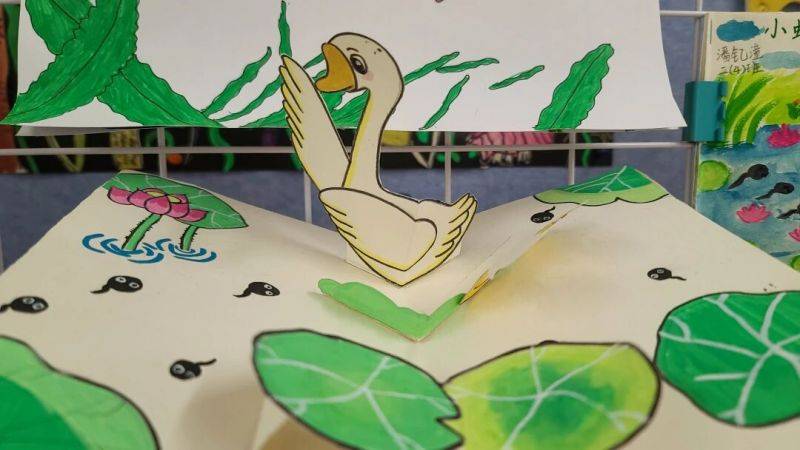 孩子们自由组合,有的与好朋友合作完成,有的独立构思。创作形式丰富多样:有的做成了一本完整的书,每一页都精心设计画面,文字反复推敲;有的做成了一幅长卷,单独看是独立画面,连起来又构成完整故事;更有心灵手巧者做成了立体绘本,画面会立起来,甚至能动起来……