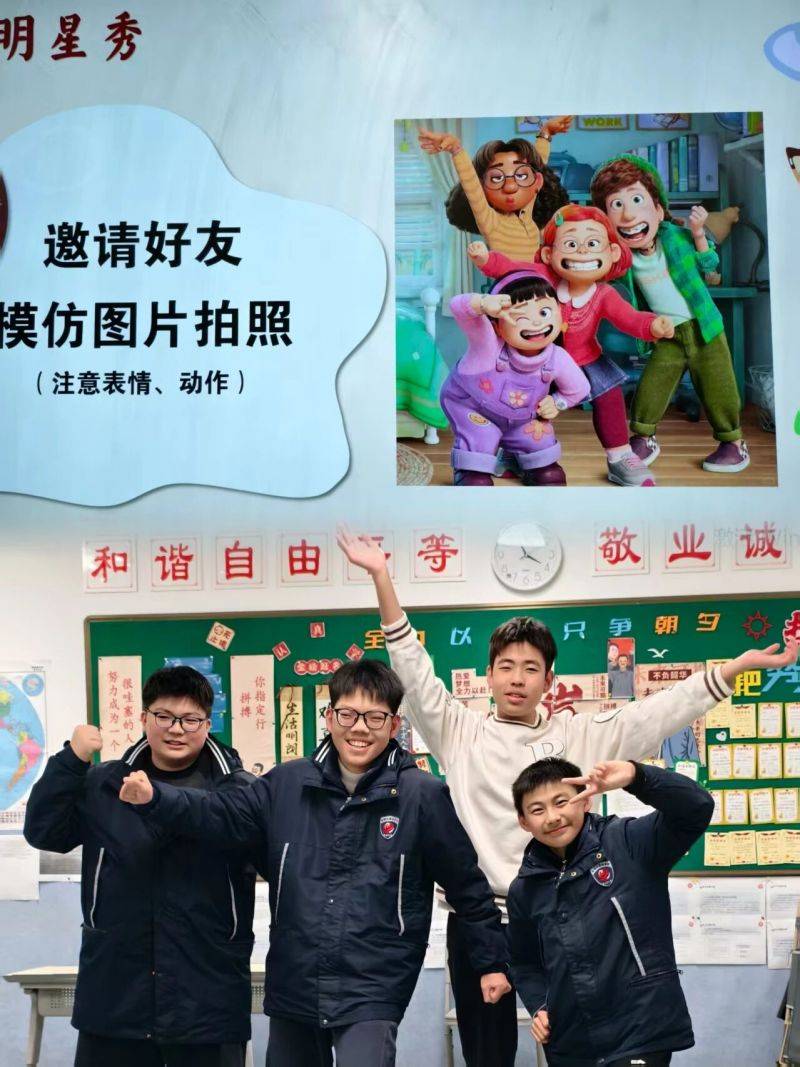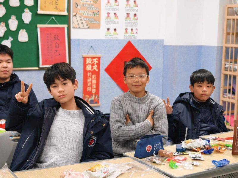 初中部的教室里暖意融融、热闹非凡,趣味游戏活动正酣。紧张刺激的比拼考验着同学们的反应速度与协作默契,大家热情高涨、踊跃参与,在欢声笑语中尽情释放青春活力。加油声、呐喊声、欢笑声交织回荡,汇成一曲激昂欢快的新年交响曲。这场游戏不仅让同学们在忙碌的学业中放松了身心,更在协作闯关间凝聚了团队向心力,定格下并肩同行的美好瞬间。