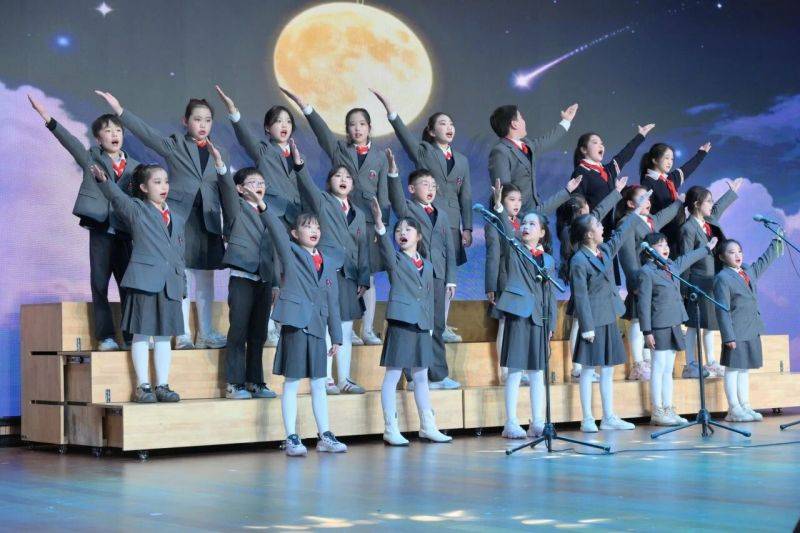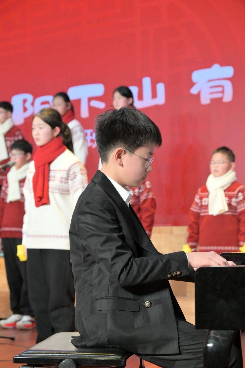架子鼓合奏燃动开场,跃动的音符与强劲的节奏,瞬间点燃全场氛围,尽显常青学子的昂扬锐气。《摇滚版西游记》颠覆经典、创意十足,《二十四小时英雄计划》旋律激昂、正能量满满......或轻快灵动,或深情款款,每首曲目都拨动着在场观众的心弦。孩子们用稚嫩却真挚的歌声,唱出对新年的美好期许,也唱响对美好生活的无限向往,甜美的嗓音在大厅上空久久萦绕。