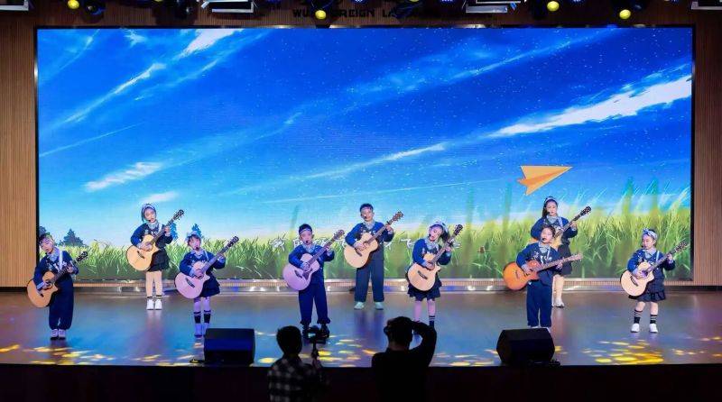 丝竹悦耳,雅乐怡情。乐器演奏环节尽显同学们的多才多艺:钢琴的黑白琴键间流淌出悠扬旋律,古筝琴弦上漾开古朴雅韵,吉他弹拨出清脆灵动的乐章……同学们以灵巧双手驾驭各式乐器,演绎一首首耳熟能详的经典曲目。悠扬乐声浸润人心,让整个报告厅弥漫着浓郁的艺术气息,师生与家长们沉浸其中,流连忘返。