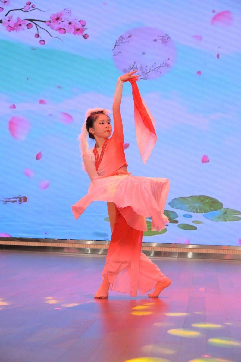 舞台之上,活力尽情绽放:啦啦操表演踏着整齐节拍,队员们笑容灿烂、动作利落,传递出团结向上的集体力量;拉丁舞表演翩然而至,舞步轻快灵动、身姿舒展优雅,在优雅与热情的碰撞中勾勒出多元魅力;舞蹈校队的同学们动作整齐划一、舞姿优美灵动,宛如一群快乐的小精灵在花丛中嬉戏起舞,引得台下掌声不断。