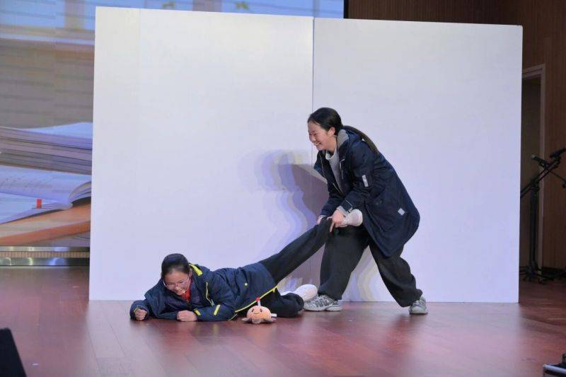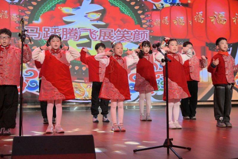 语言类节目将现场气氛一次次推向高潮。一(2)班的同学们用窗花剪出吉祥的图案,剪出美丽的山河!三(3)班带来的《吉祥马年绕口令》,同学们你一言我一语,夸张的语气搭配生动的表情,逗得台下观众捧腹大笑;五(2)班小品《小学生作文,有画面了》中,小演员们化身调皮可爱的小学生,惟妙惟肖地演绎出作文里的趣味趣事,引发全场共鸣。