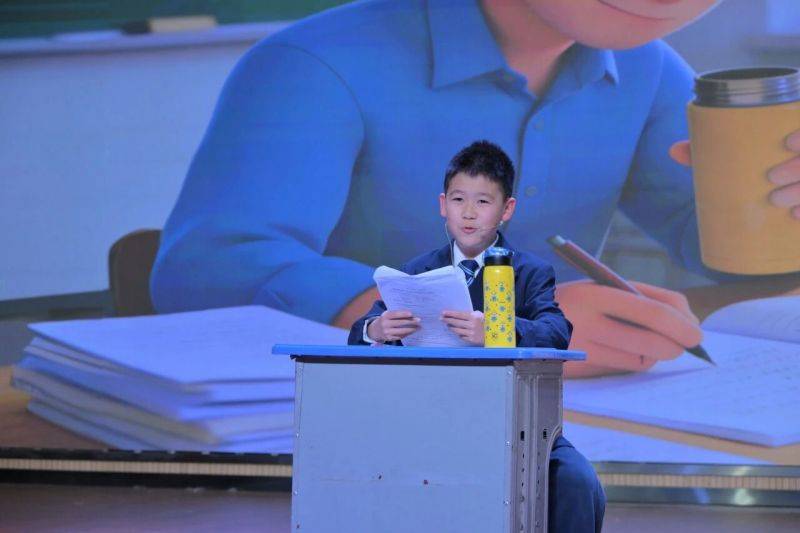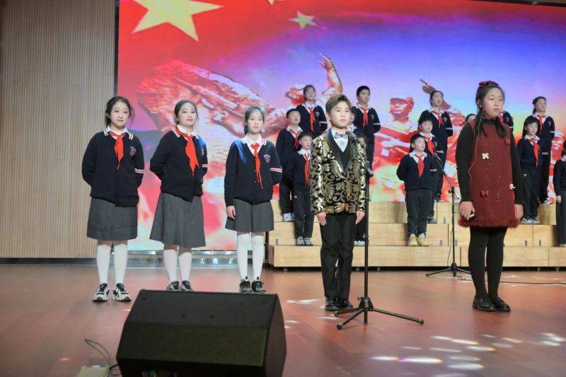 欢声笑语之余,朗诵节目送来一股清新醇厚的文化之风。五(1)班的同学们精神饱满、站姿挺拔,以抑扬顿挫的语调、饱满充沛的情感朗诵经典篇目《盛世中国》。他们时而激昂高亢,时而低沉婉转,字字铿锵、句句深情,在朗朗书声中,让在场者深切感受中华文化的博大精深,更展现出五年级学子朝气蓬勃、奋发向上的精神风貌。
