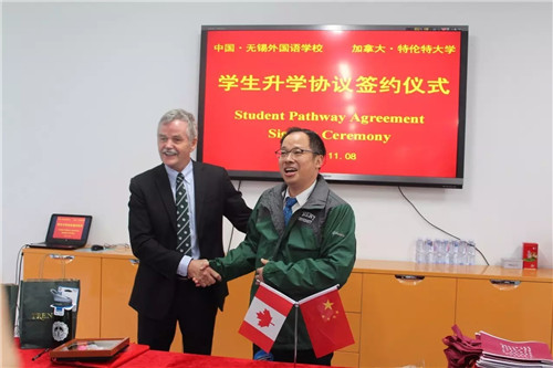 自去年11月9日我校和加拿大特伦特大学签署合作办学协议以来,两校的交流合作更加紧密。2016年11月8日,加拿大特伦特大学一行八人来我校深化合作,签订了学生升学协议和海外教学实习基地协议,商谈国际教育卓越师资培养等项目。学校董事长解晓南博士、校长李莉、国际部校长孙武、国际部教学主任马丽云老师、德育主任吴辰超老师参加接见和洽谈。