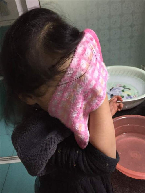 今天早上说要自己洗脸,因为昨天看到群里的其他小朋友自己洗脸的照片了,21天习惯养成的推广还是有引导作用的,加油!