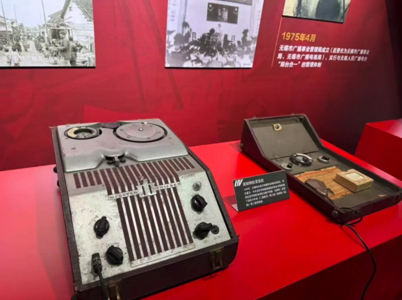 一旁的复原展区里,1949 年无锡电台开播时的复古木质桌椅、老式麦克风与播音设备静静陈列,仿佛瞬间将时光拉回当年 9 月 1 日发出第一声呼号的那个瞬间,让同学们直观触摸到无锡广电的创立初心。