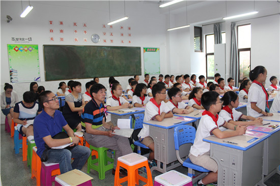 上午二三节课,教科院各学科专家在各学科组长陪同下,深入课堂听课,详细了解学科教学和学生们的学习情况。设备齐全的教室,阳光自信的老师,文明聪慧的学生;循循善诱的启发,独具新意的回答,让专家们频频点头,满意微笑。
