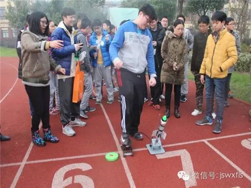 在本届科学文化艺术节上,我校物理组设计了水火箭比赛项目。在本次比赛之前学科组曾组织过学生进行了一系列的试飞、改进,最终有二十多支队伍脱颖而出参加决赛。虽然天气转冷,但丝毫不影响同学们参加的积极性。小选手们带着制作精良的水火箭,早早地到达比赛场地候场。在比赛过程中,有的水火箭冲击长空,表现极佳;也有的水火箭出现漏水现象,不过这并不影响观赛同学的热情,现场爆发了一阵阵的欢呼声。最终待所有火箭发射结束,评委老师根据飞行距离分别评出3个一等奖,6个2等奖还有9个三等奖。另还有一些制作精良的水火箭被选出做为展示组。