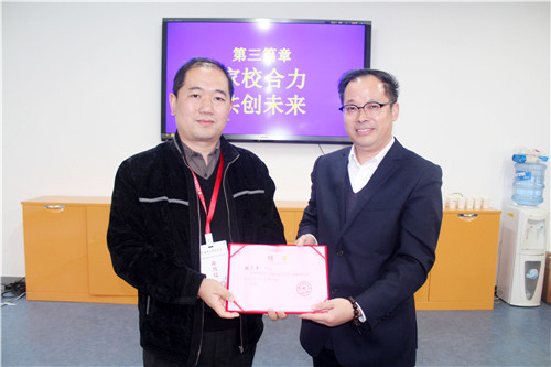 本届家委会主任由顾志坚先生担任,解晓南博士为他颁发了聘书。当顾先生从李莉校长手中接过“家校合力,教育同行”的授旗时,会场响起了热烈的掌声,将会议推向了高潮。