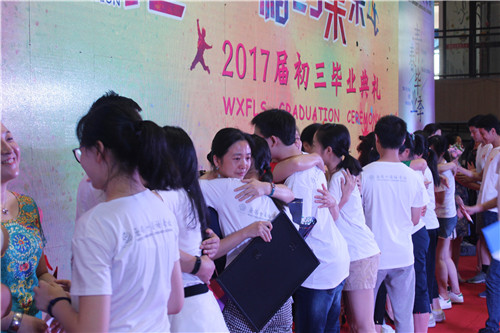 在感恩父母时,孩子们十分虔诚地送给父母一份精心准备的礼物感谢他们的养育之恩并与父母热烈拥抱,很多父母流出了激动的眼泪。几位家长的感言,更是道出了毕业生家长的心声。他们感谢无锡外国语学校给予孩子们的教育和帮助,使孩子们获得了最大的进步,考取了自己理想的学校,并感谢学校让他们的孩子变得更懂事,更自信,更阳光。