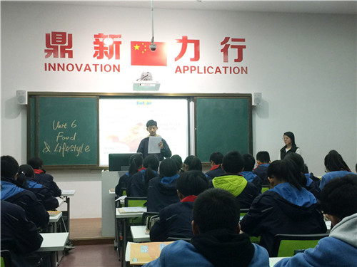 首先上课的是唐佳老师,是一位成熟型的年轻教师。她的开课内容是七年级上册Unit6 Integrated Skills How to keep fit. 首先唐佳老师由一只肥胖可爱的猫meatball的视频导入,一下子引入课堂主题。接着唐老师让学生分成四个小组进行PK, 对所学的食物进行有效复习,并由这些食物引到学生的生活方式,过渡非常自然。最后最令人印象深刻的是唐老师设计的debate辩论的活动,充分让全班学生投入进来,将所学知识完全展现出来,非常精彩。