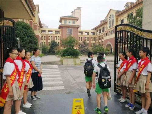 9月1日上午,无锡外国语学校在升旗广场隆重集会,全校师生整齐列队。激昂的国歌,冉冉升起的五星红旗,拉开了开学第一课的序幕。李莉校长精神饱满、激情荡漾地给全校师生上了题为《骄傲,我是外国语人》的开学第一课。随后,无锡地铁最美少年金子添闪亮登场,发表感言。最后,少先大队辅导员陈辰老师代表学校团委和少先大队向全校学生发出“共建文明校园,共创文明城市”的倡议。