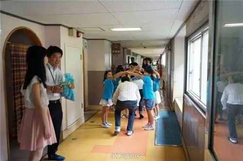 动手篇——日本老师手把手教我们折小礼物,类似幸运星的小挂件,作为赠送给当地日本小朋友的礼物,老师们热情详细的讲解令我们非常感动,也让我们首次接触了日本的文化,临出门时我们大家还一起组成了长长的拱门,让老师们开心的穿过,最重点是,我们的任老师通过拱门时不断的鞠躬,不下于50多个,呵呵,让我们忍俊不住!