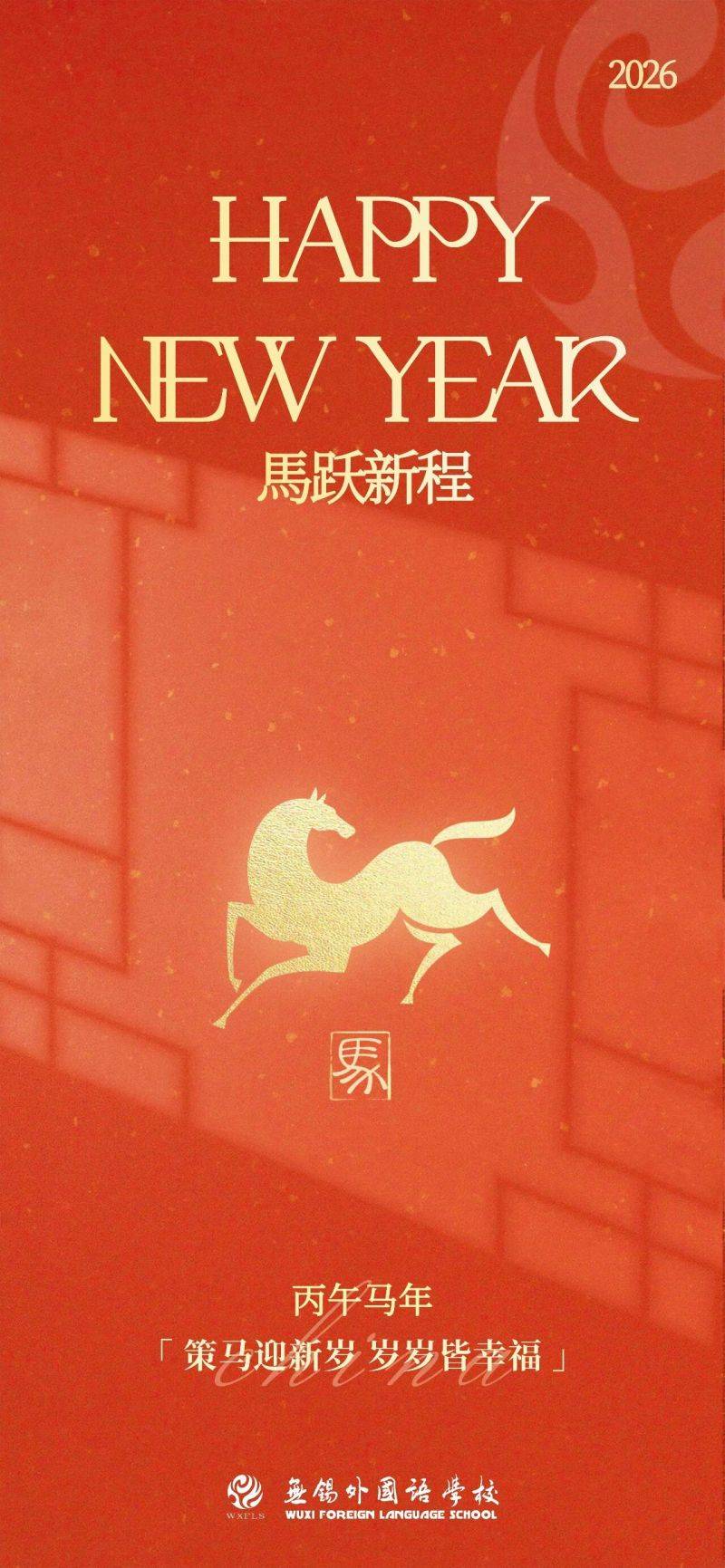新的一年,无锡外国语学校祝您龙马骉骉,福泽骎骎,家业骦骦,心志骁骁!