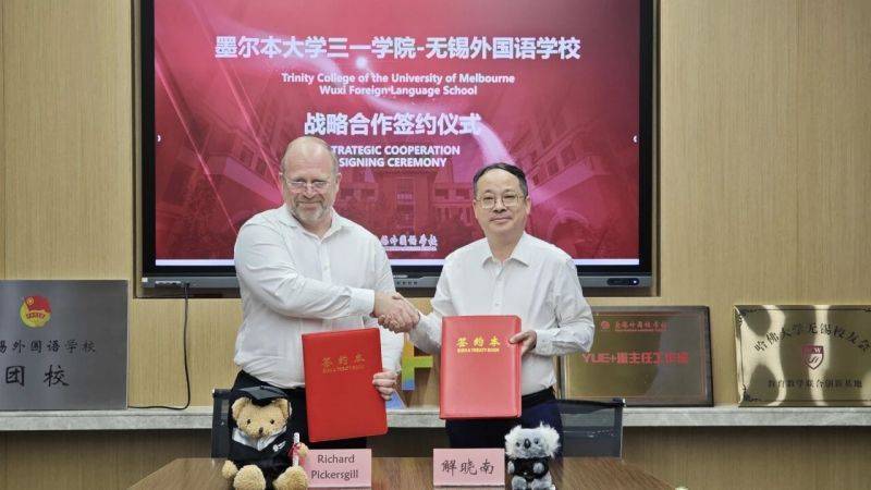 9月25日,墨尔本大学三一学院院长Richard Pickersgill先生一行参观学校并举行座谈交流。双方就共育优秀国际化人才签署合作备忘录。我校将选拔学业成绩优异、综合素质突出的高中生,赴三一学院攻读预科课程。学生顺利完成预科且达到成绩要求后,可保送至墨尔本大学深造。