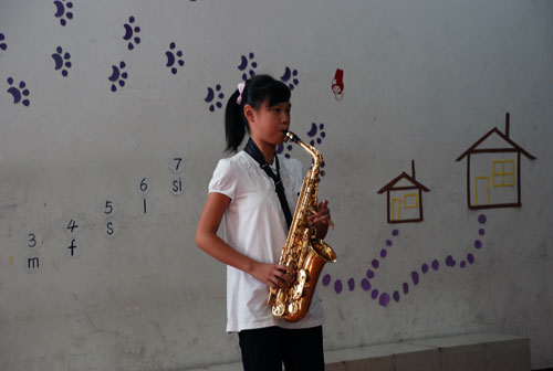 24日下午,学校为这些特别的客人举行了欢迎仪式,高小芳校长致欢迎辞并表达了我们全校师生的慰问。随后初一(8)班邵天乐同学扮演的“麋鹿”和初二(8)高雨旸的萨克斯演奏,更是将欢迎的气氛推到更高潮。当晚,所有来访学生都入住我校部分学生家,在学生和家长带领下,徜徉于美丽的无锡。