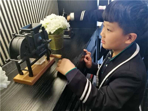 等待薄饼出炉的过程是煎熬的,“好奇宝宝”们开始拉着Cindy姐姐为他们讲解咖啡制作的流程,介绍店里陈列的一些稀奇古怪的仪器,例如磨豆机、摩卡壶等。