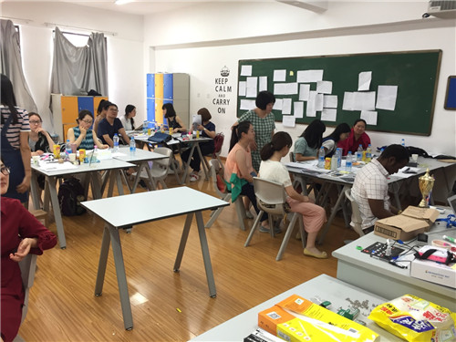 第一天培训的主要内容为MYP的理念、全球化思维、探究式学习教学。Terry通过一些生动的图片以及视频结合自己的工作教学经验,让在座的教师对于概念引导的教学、好的教育应该包括哪些方面、概念如何融入到学科中等方面进行讨论与交流,并通过填写表格、绘制图画等形式展示出来。第二天,Terry主要讲了MYP单元计划表的制作,项目中的服务与学习以及MYP的评估和授权。每位教师根据自己学科的性质与内容,结合Terry所教授的内容,从选取课题和重大概念、相关概念、全球背景、对课题进行探究式陈述这几方面,学习着一步步制定自己的学科计划。
