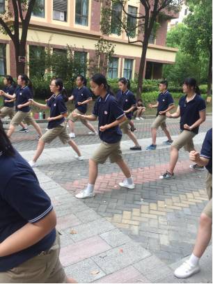 腿麻了,腰挺不直了,汗珠湿透了校服,但同学们都咬紧牙坚持、坚持、再坚持;练转体时要求我们动作整齐划一,脚要跺出啪啪的声音,脚底震地一阵阵发疼;练军体拳时教官要求我们喊出嘹亮的口号,整个操场响彻回声,一招一式丝毫不能马虎,每当教官发出个指令,同学们都必须认真的完成,只要有一位同学动作不到位,教官都会要求我们重来,直到我们把每一个动作都做到标准。一天的军训结束同学们都晒得满脸通红,汗流浃背。