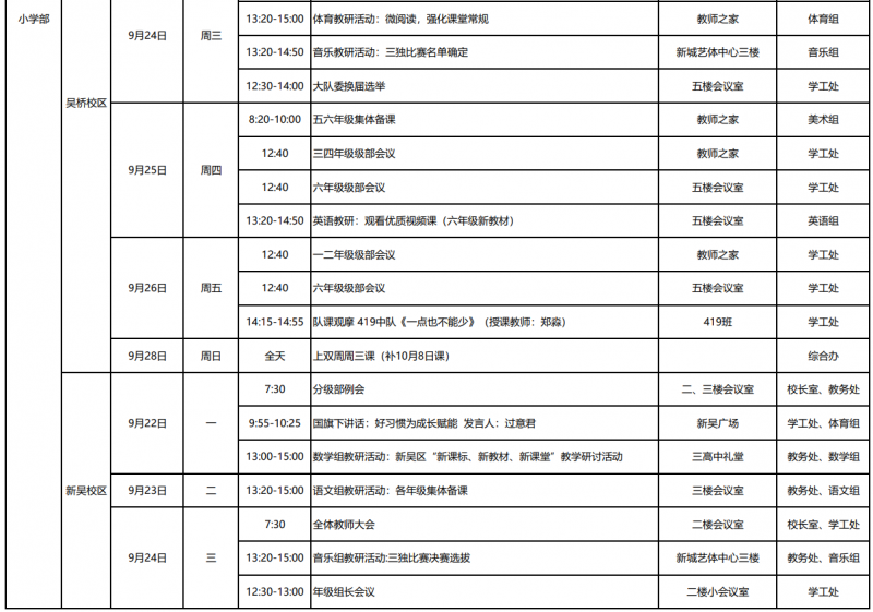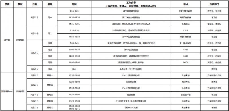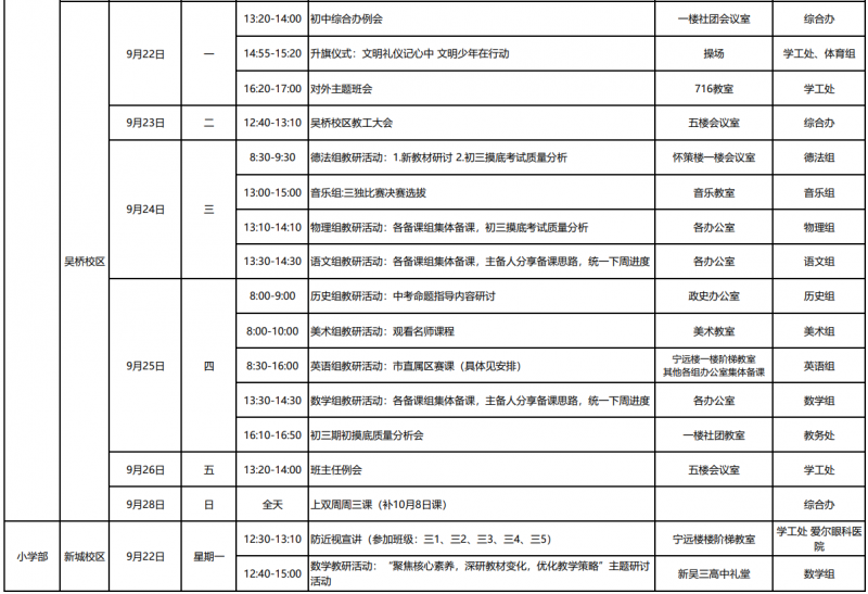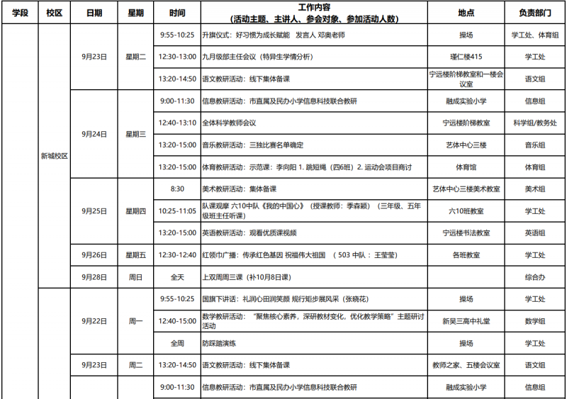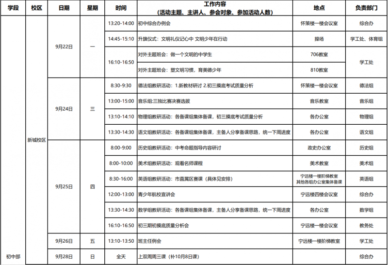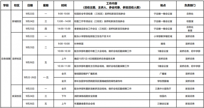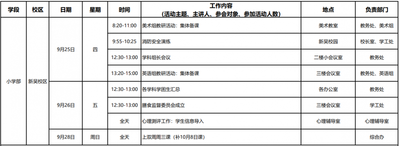 第4周工作日程安排表
