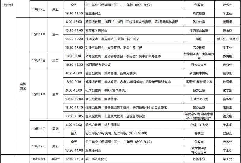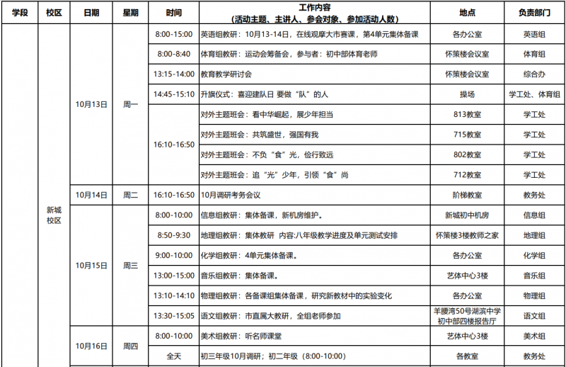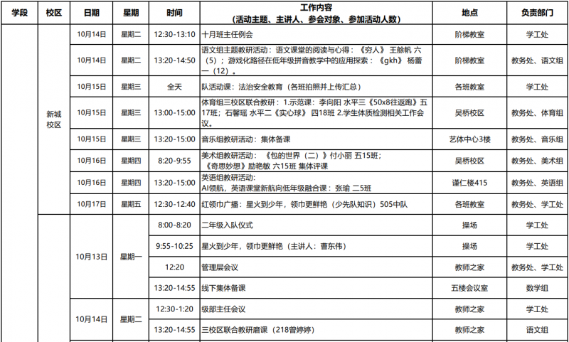 第7周工作日程安排表