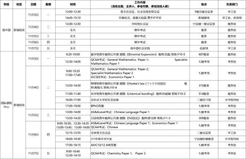 第10周工作日程安排表