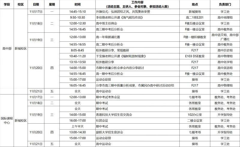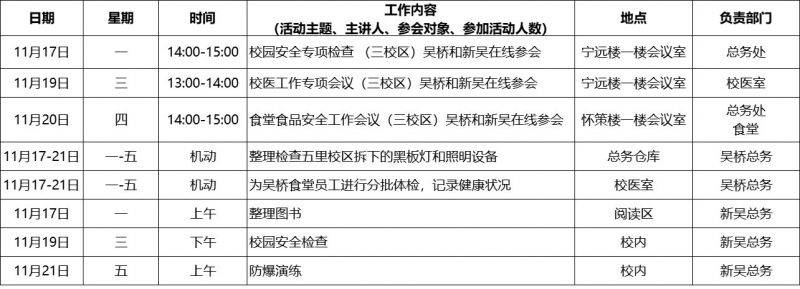 第12周工作日程安排表