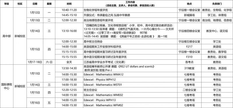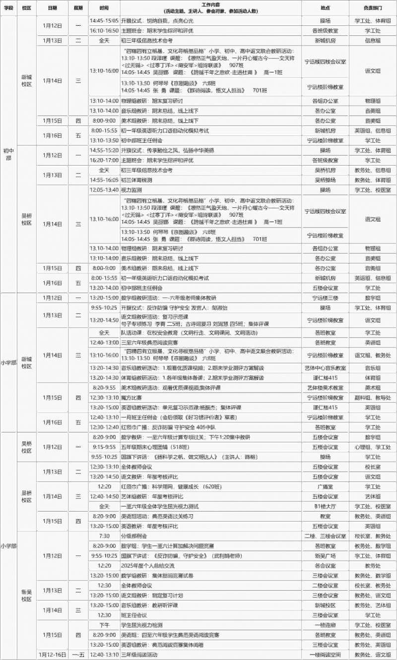 第20周工作日程安排表