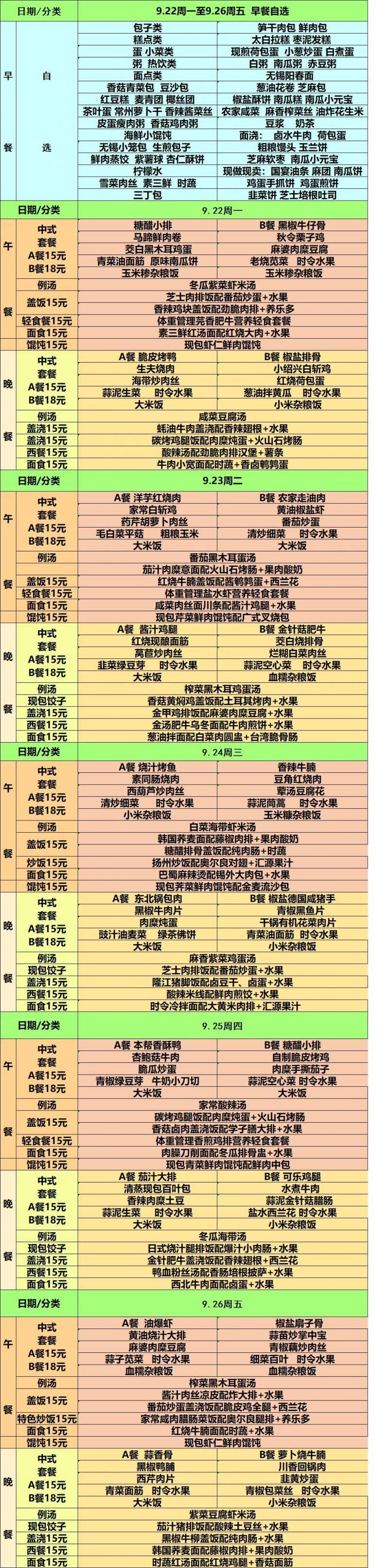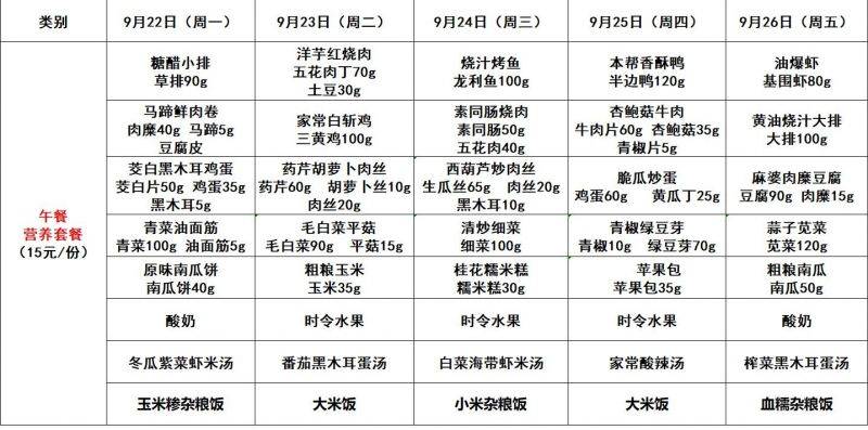 每周菜单(9.22—9.26)新城校区