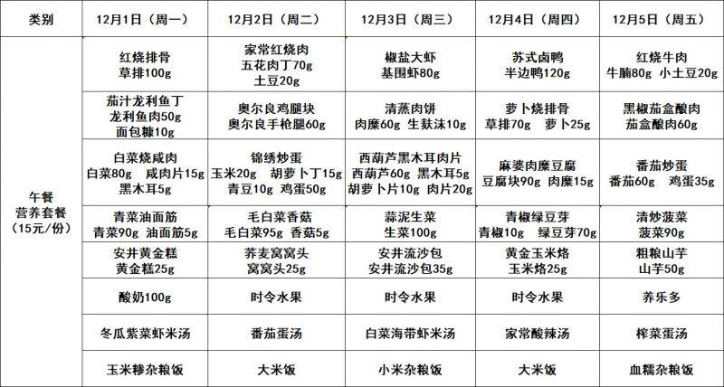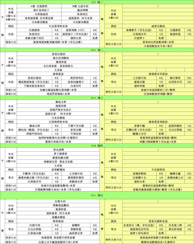 每周菜单(12.1—12.5)吴桥校区
