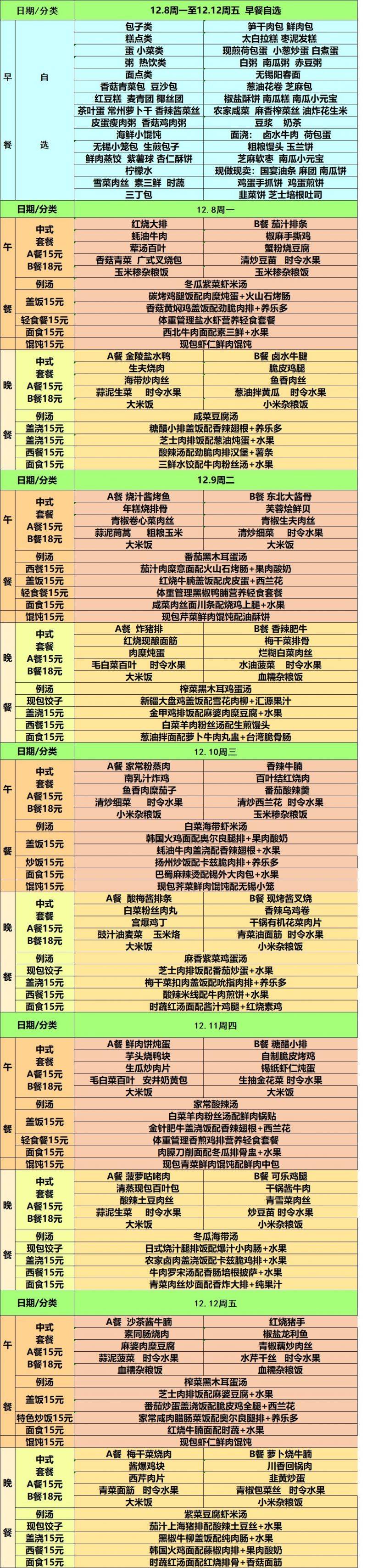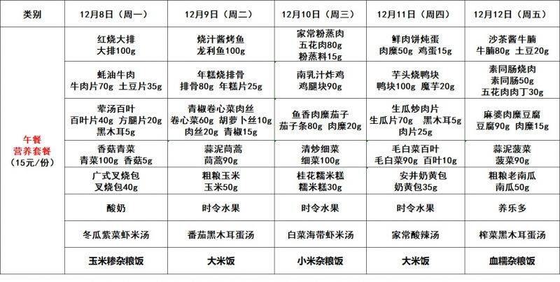 每周菜单(12.8—12.12)新城校区