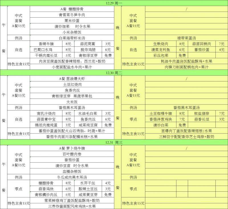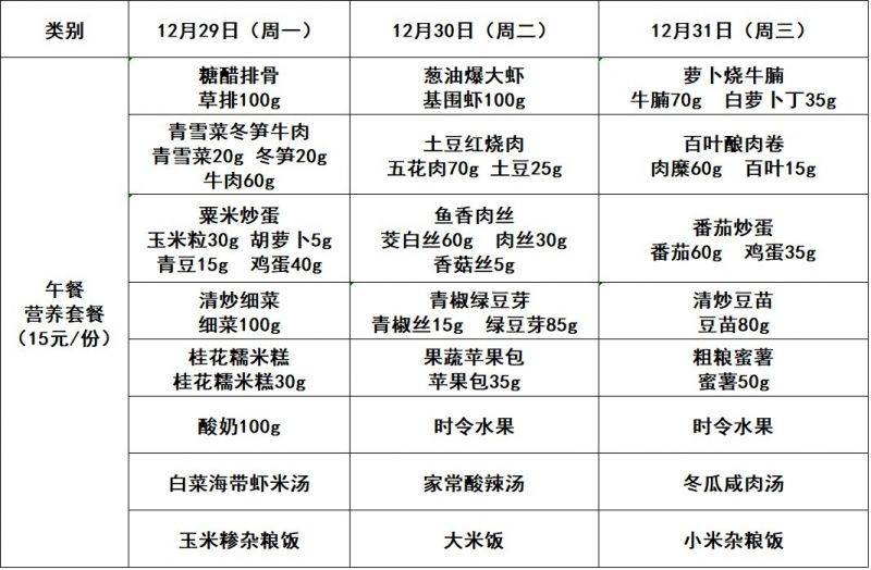 每周菜单(12.29—12.31)吴桥校区