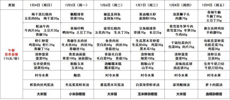 每周菜单(1.4—1.9)新城校区