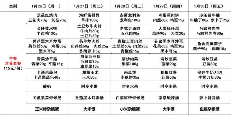 每周菜单(1.26—1.30)新城校区
