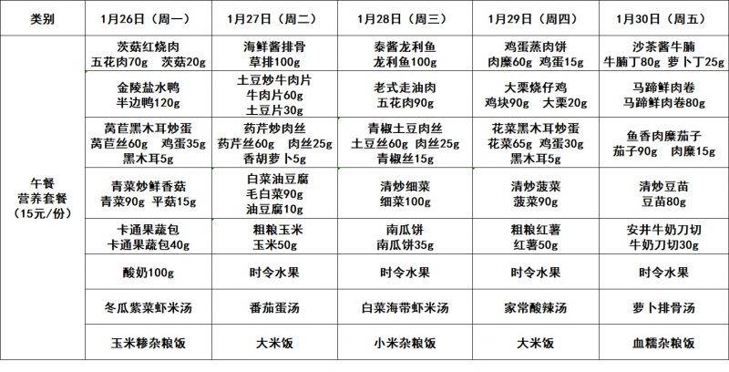 每周菜单(1.26—1.30)吴桥校区