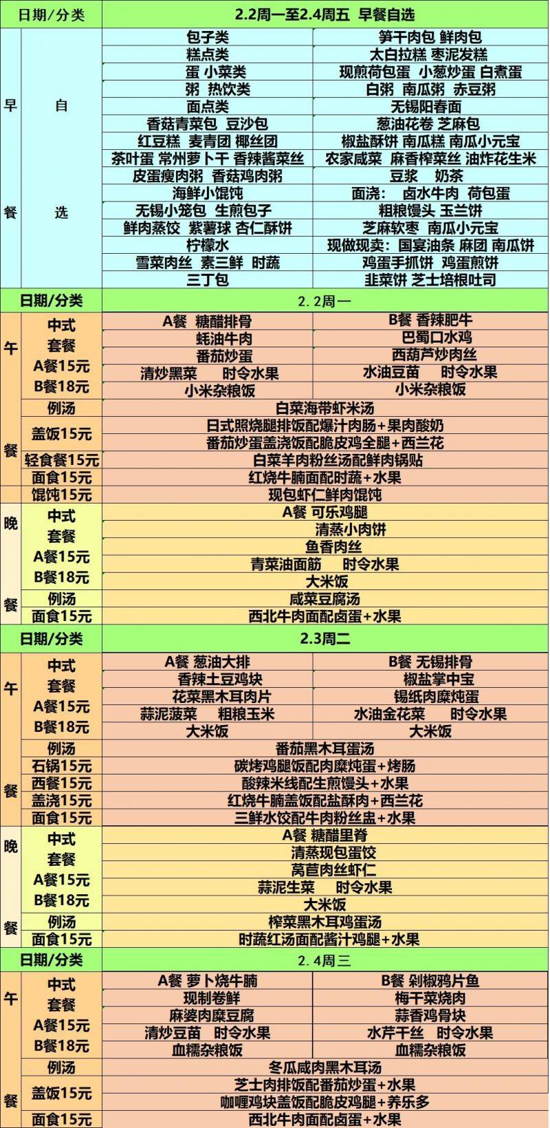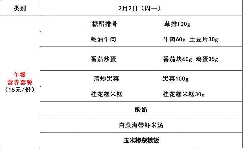 每周菜单(2.2—2.4)新城校区