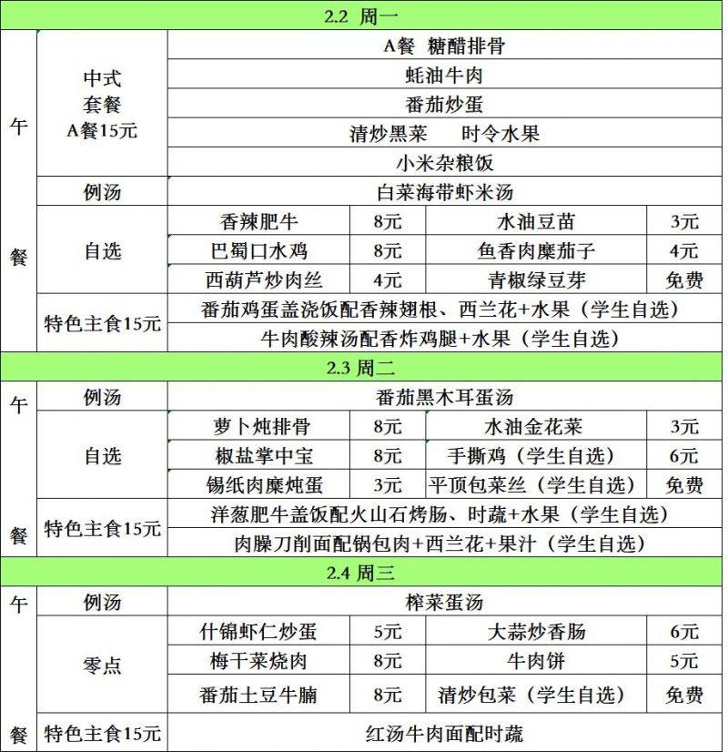 每周菜单(2.2—2.4)吴桥校区