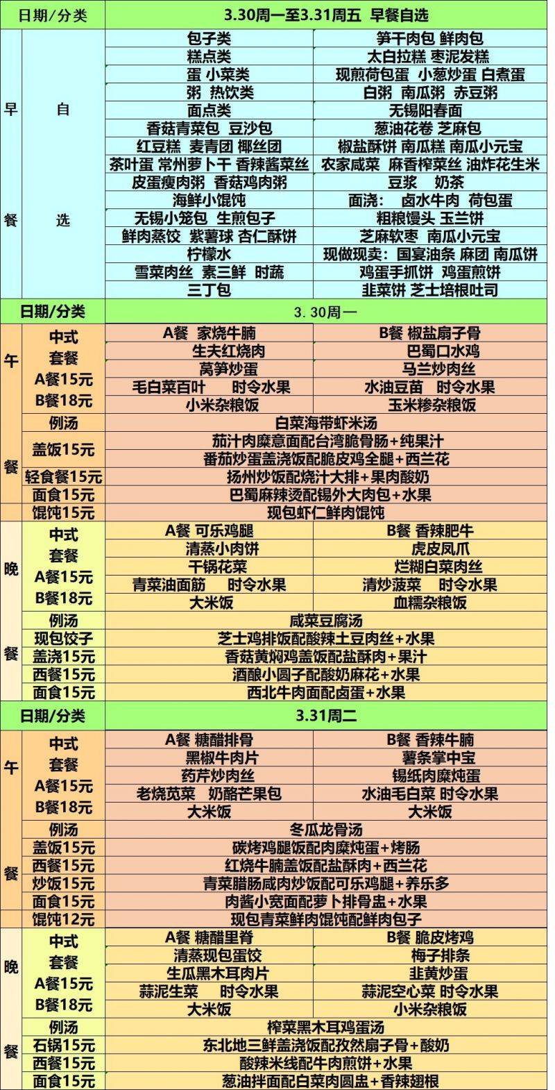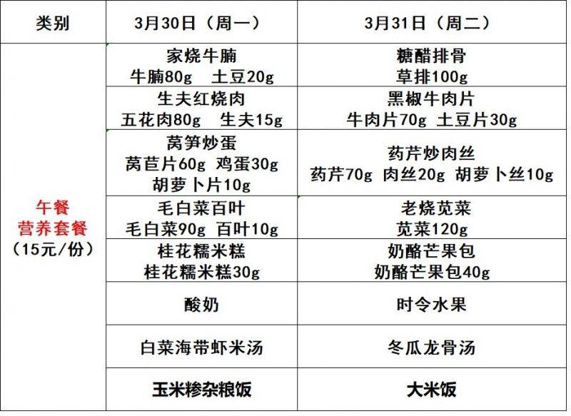 每周菜单(3.30—3.31)新城校区