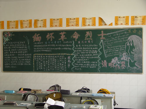 为了深入开展社会主义荣辱观教育,进一步弘扬民族精神,缅怀革命先烈,无锡外国语学校决定在清明节前后围绕该节日开展一系列的主题教育活动。首先,在4月7日的升旗仪式上,沈明娴老师作了主题为"发扬革命传统,弘扬民族精神"的国旗下讲话,教育全体学生牢记革命精神,弘扬革命传统,为学校、为家乡、为祖国而努力学习。其二,在上周全校各班出了一期关于“铭记烈士遗志 誓为领巾添彩”的黑板报。其三,在4月14日,初二(8)班开展了以“缅怀先烈、感恩社会”为主题的班队活动,全校师生代表观摩了这次活动。活动通过小品、朗诵、手语演唱等形式,教育广大学生不忘革命先烈的英雄事迹和他们的未尽事业,增强了学生的历史责任感和使命感。