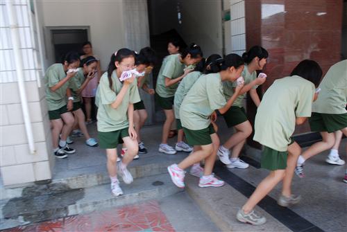 讲座过后,在陆教官的指导下,我校师生进行了安全疏散演练,一声尖利的警报声响起,全体师生整齐有序,按事先制定的撤退方案,安全有序地疏散到操场,整个过程仅用二分四十秒钟,效果显著。